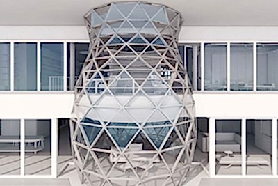 Engineering,design,fabrication and installation of 573 m2 single layer freeform facade with organic nodes and triangular members